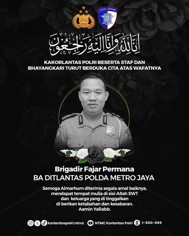 Polda Metro Jaya memastikan akan memberikan penghormatan terakhir secara layak, sekaligus memenuhi seluruh hak almarhum, termasuk santunan kepada keluarga yang ditinggalkan.