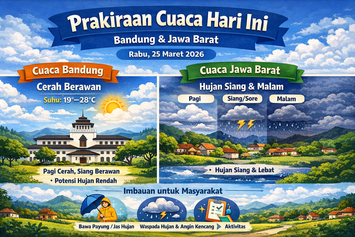 Prakiraan Cuaca Hari Ini di Bandung dan Jawa Barat, Rabu 25 Maret 2026