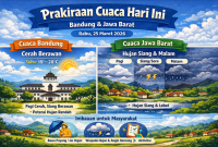 Bandung, Kabar Pajajaran – Cuaca di wilayah Bandung dan sebagian besar Jawa Barat hari ini diperkirakan cukup dinamis. Masyarakat diimbau tetap waspada terhadap perubahan…